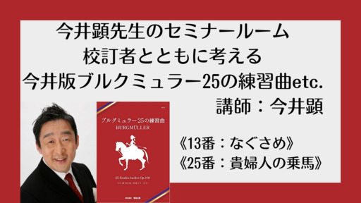 さらに情緒豊かで個性的な演奏を追求する「今井ゼミ」のご紹介です。タイトルを決めて時間内で完結させることにこだわらない、継続を重視した学びの場。扱うテーマも受講者の意向もふまえながら柔軟に発展させていこう、という新しいコンセプトのオンライン企画です。