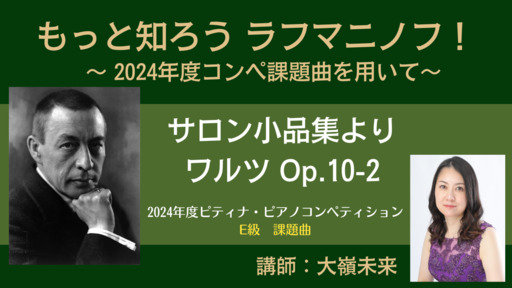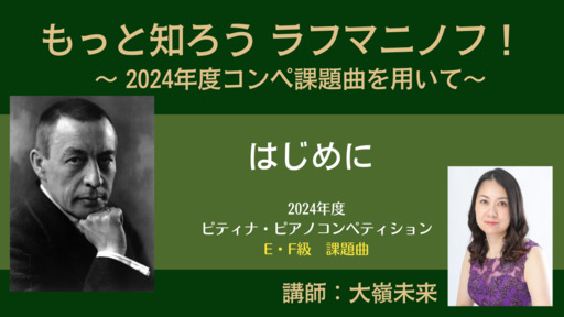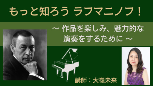 2013~2016年にかけて6回に及ぶラフマニノフ全曲演奏会を成し遂げられたピアニスト・大嶺未来先生が、広大にして深遠なるラフマニノフの世界をお話します。